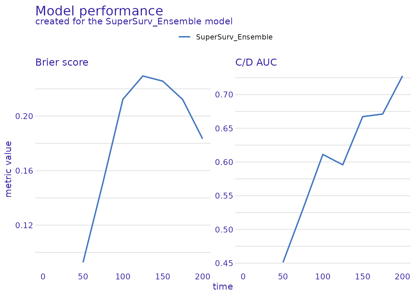 cross-validate your ensemble’s Time-Dependent Brier Score and AUC using